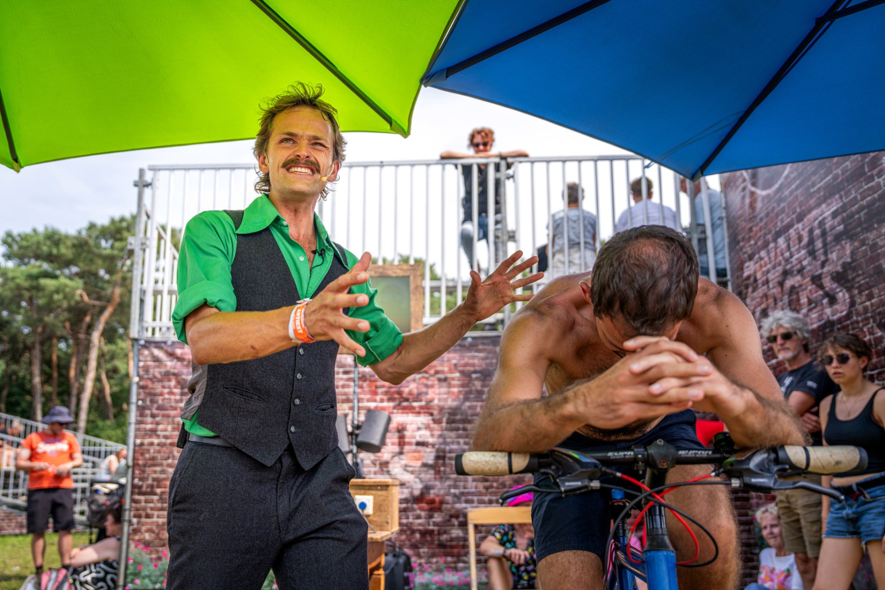 Blijven praten is belangrijk. Live interactie is daarin voor mij cruciaal, omdat daarin het fysieke en menselijke aspect onmiskenbaar is. Ik en mijn medespeler zijn vóór en na de act veel bij de installatie aanwezig om met mensen in gesprek te gaan, vragen te beantwoorden en uitleg te geven.