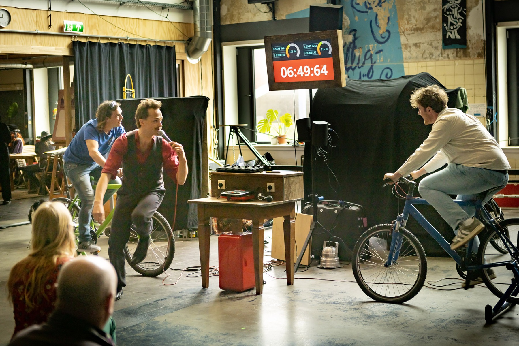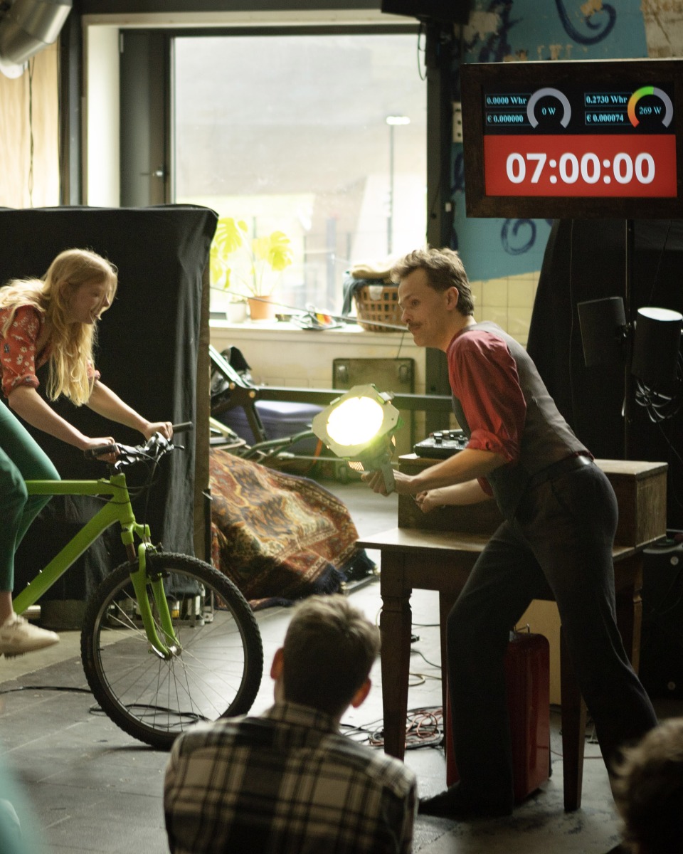 Het publiek wordt uitgedaagd om samen te werken, en volledig op eigen kracht twee tosti’s bruin en knapperig te bakken. Het tosti-ijzer wordt aangedreven door de 2 stroom-opwek-fietsen: één fiets verwarmt de bovenkant, en de andere verwarmt de onderkant. Achter de fietsers is op schermen te zien hoeveel stroom er wordt opgewekt, en hoe lang ze nog te gaan hebben.